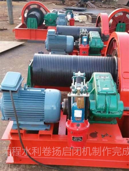 卷揚機通過齒輪箱和減速齒輪減速,減速過程大,速比大。有時它通過滑輪組以擴大比例,從而可以獲得更大的開啟力,這適用于具有較大孔徑和水頭的閘門。鋼絲繩圍繞繩索鼓,一般包圍單層,也可以圍繞多層。因此,提升機的跳閘實際上是無約束的,并且以更大的行程打開閘門或深孔閘門是方便的。鋼絲繩的力方向可以適當(dāng)擺動,也可以通過附加的埋入式轉(zhuǎn)向滑輪來改變。因此,閘門與提升機之間的協(xié)作非常靈活。在選擇電力時,升降和關(guān)閉速度較快,適合于事固閘門和經(jīng)常開啟的閘門的開閉。